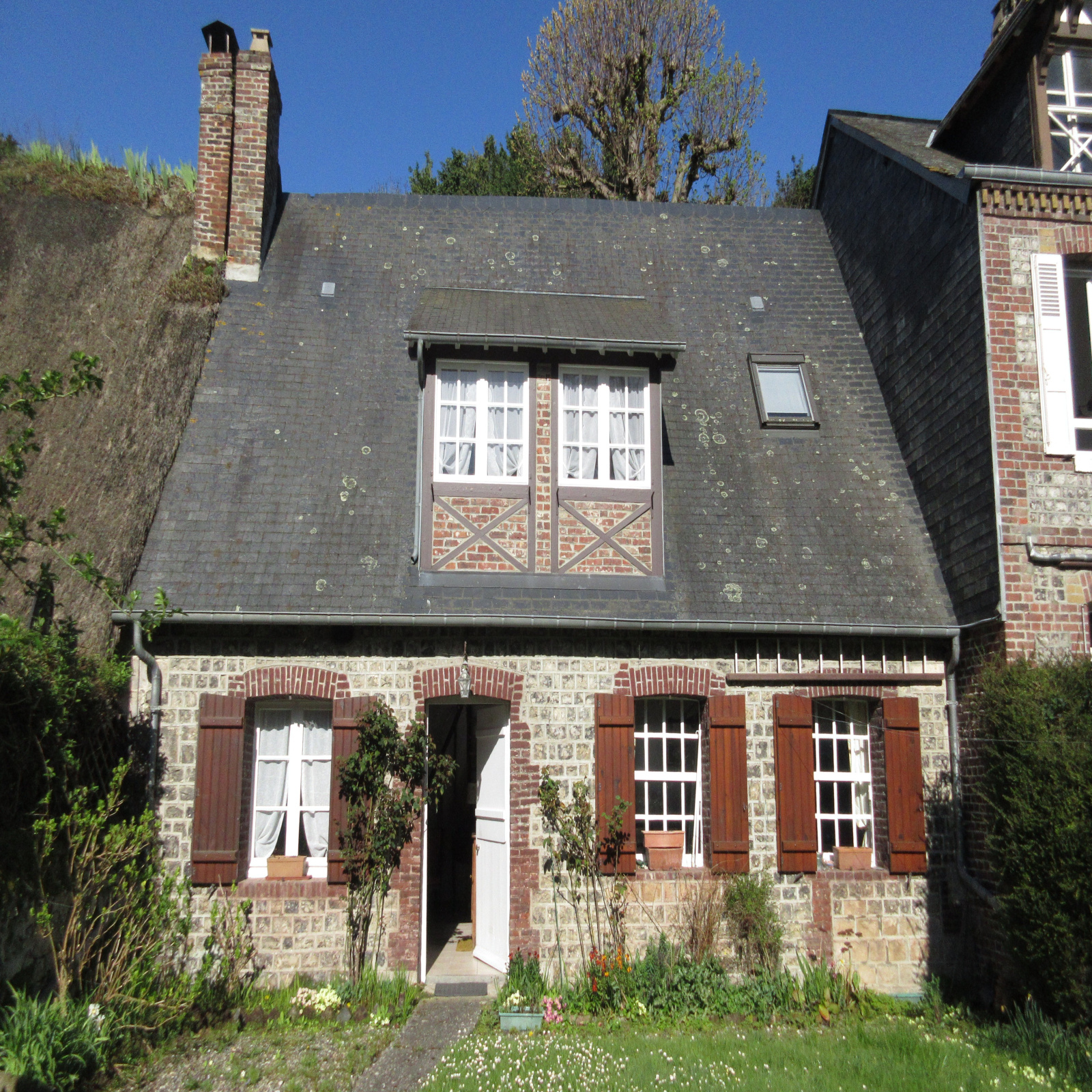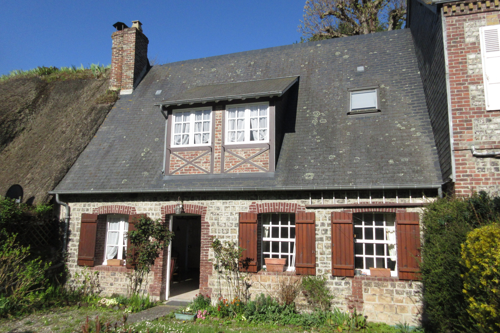 Sur le chemin des Cressonières, à l'abri des regards, ravissante maison en briques et silex avec son jardin communiquant sur la Veules...........