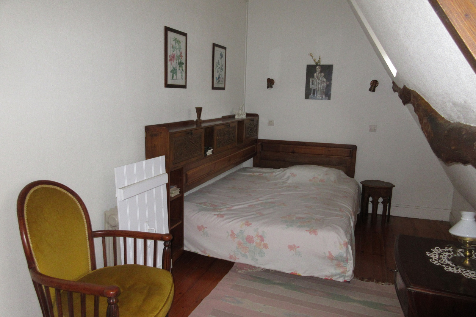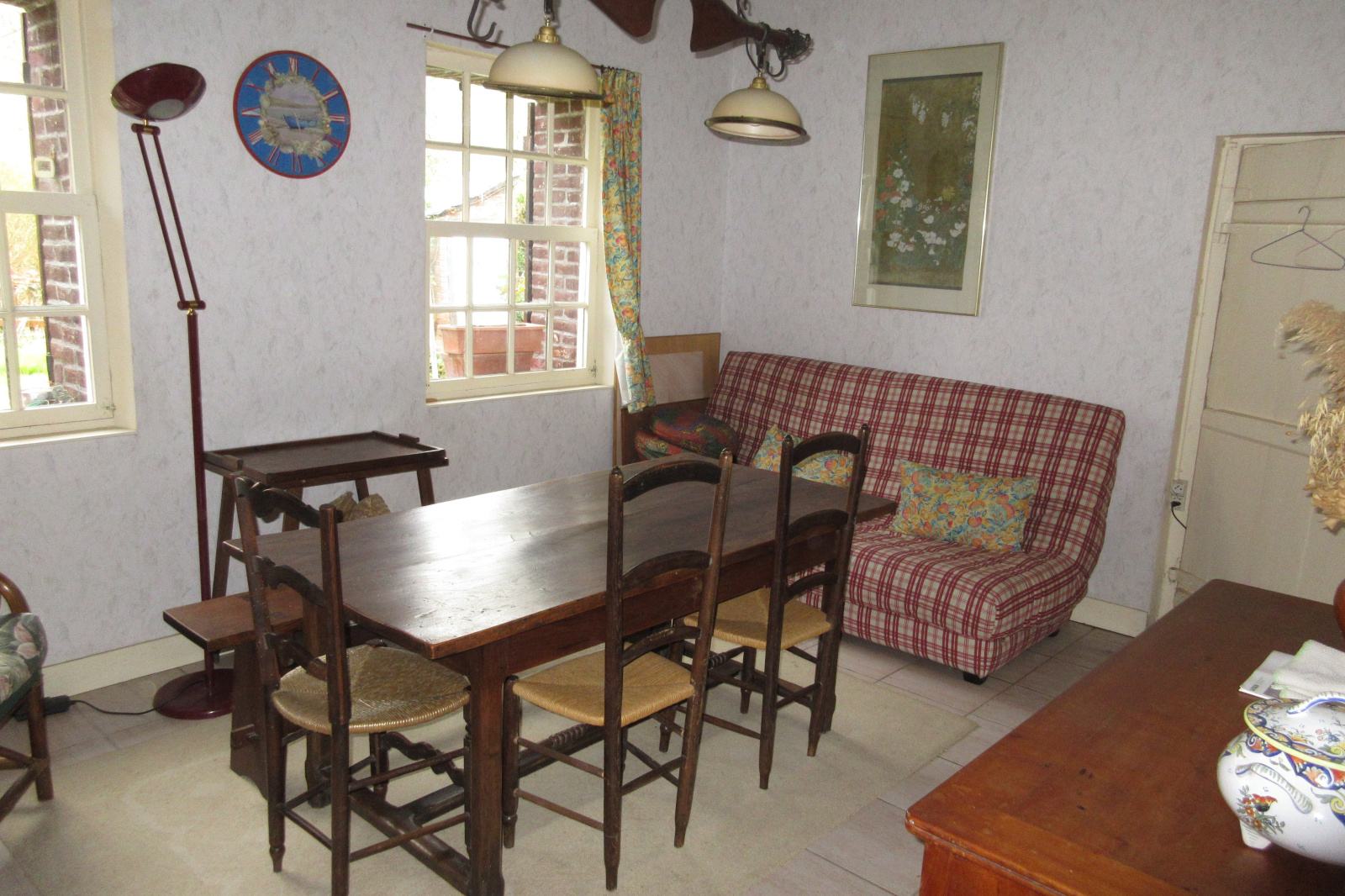 La maison se décompose comme suit : séjour, salle à manger, petite cuisine, salle de douche avec toilettes et 3 chambres à l'étage.