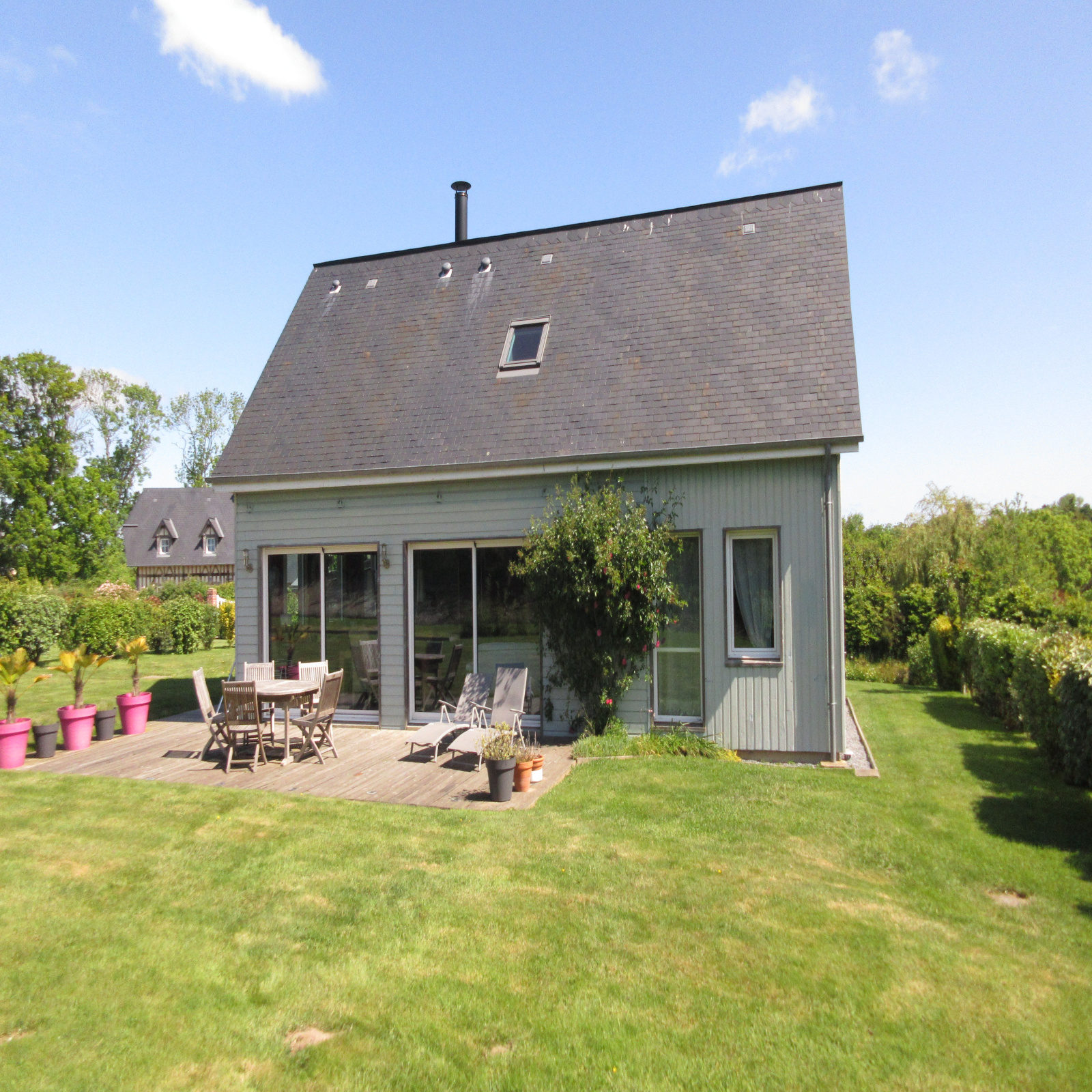 Rare à la vente, plage de Veules à pied, au calme, maison de 2009 sur vide sanitaire, ossature bois , 119 m² offrant une entrée, cuisine aménagée ouverte sur salle - salon avec grandes baies vitrées.4 - 5 chambes, 3 salle d'eau. 1000m² terrain , maison orientée Sud. Chauffage électrique et poele à bois. Plancher massif au rez de chaussée, menuiseries aluminium. impot foncier 1376 €.