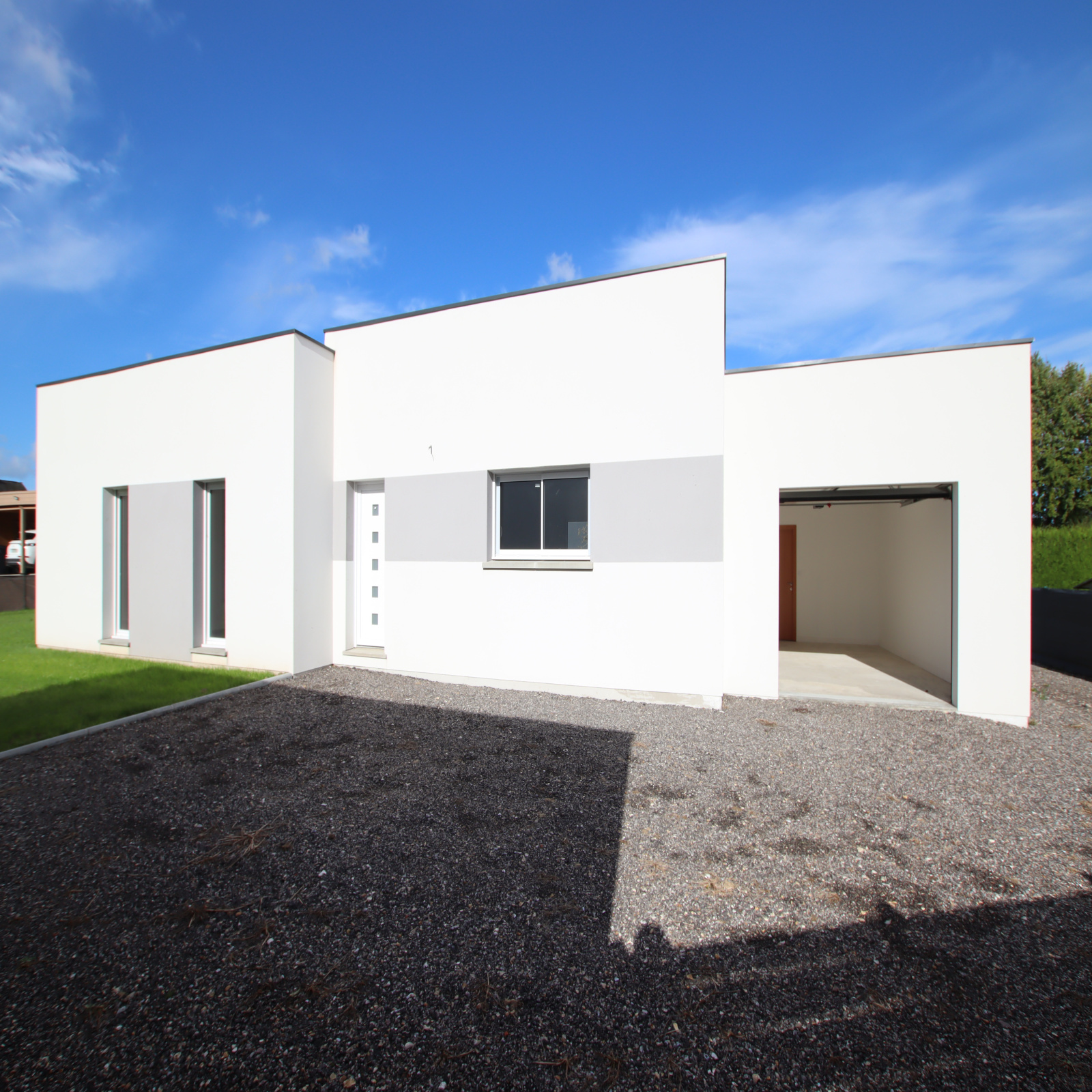 Dans Luneray, Maison contemporaine de plain pied, au calme, norme RT 2012, sur un terrain d'une superficie de 1073 m², offrant entrée, grande pièce de vie de 53 m² avec cuisine aménagée, 3 chambres de 16m², 13,8 m² et 10,8 m², salle de bains ( baignoire et douche), toilettes séparées. Buanderie. Volets roulants électriques. Garage de 23m² avec porte automatique. Belles prestations.