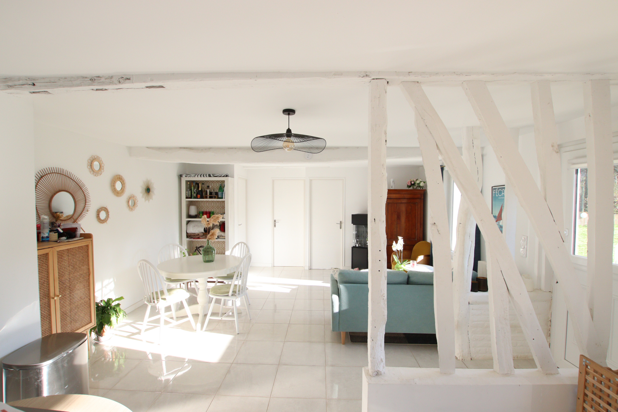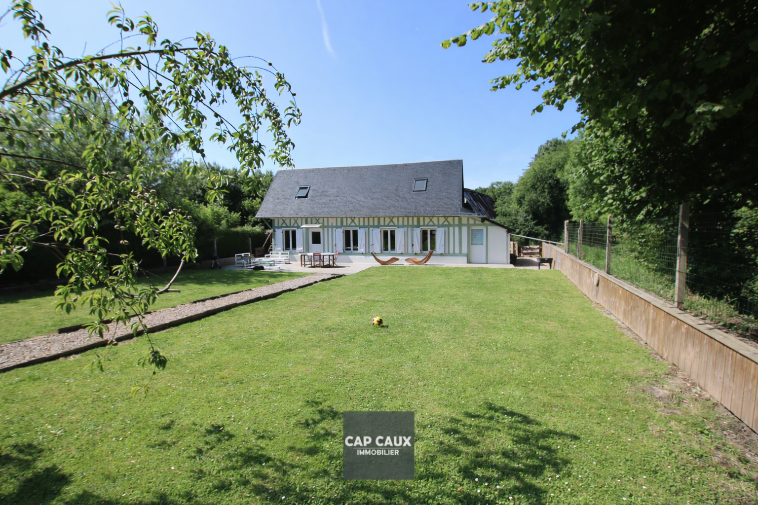 5 mn LUNERAY, 6 mn VEULES LES ROSES, au calme, ravissante maison normande, rénovée avec beaucoup de soin, très lumineuse et fonctionnelle. Elle offre sur 97 m² au rez de chaussée : entrée, cuisine aménagée, séjour - salon ( 37mé), plus 2eme espace salon (9,55m²), une chambre avec salle d'eau et toilettes. A l'étage, couloir desservant 2 chambres et salle d'eau. Chauffage central par pompe à chaleur. Dépendance 28m². Tout à l'égout pour un terrain de 752 m².