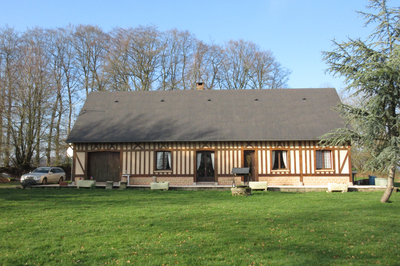 Exceptionnel, très rare à la vente, pour tous ceux qui recherchent une grande tranquilité, maison reconstruite en 1985, entourée d'herbage, sur 7855 m² de terrain. Elle offre une entrée, cuisine, salle à manger - salon 50 m² avec cheminée, 2 chambres, salle de bains, buanderie, garage attenant. Le grenier a commencé a etre réhabilité. Dépendance.
