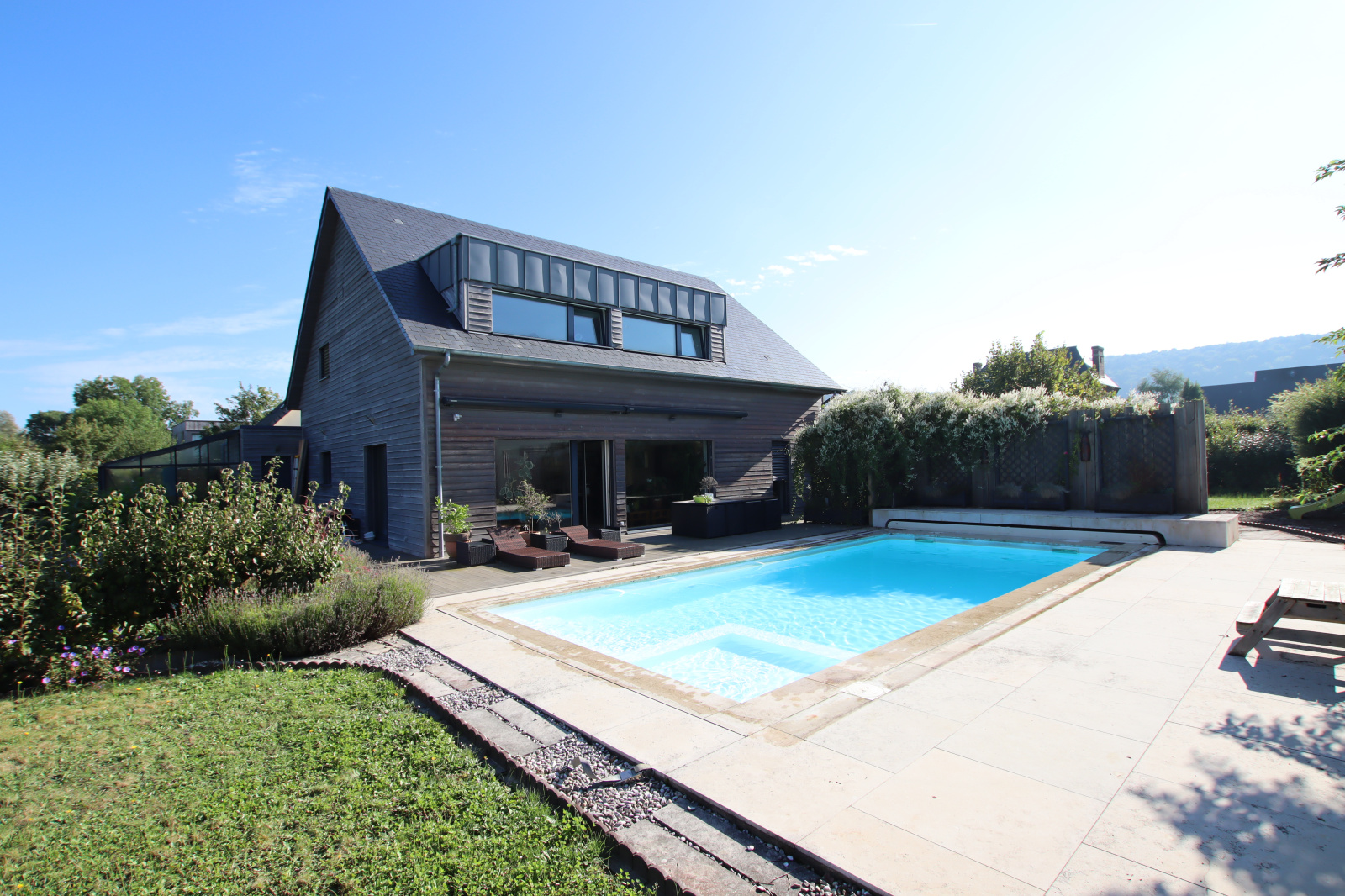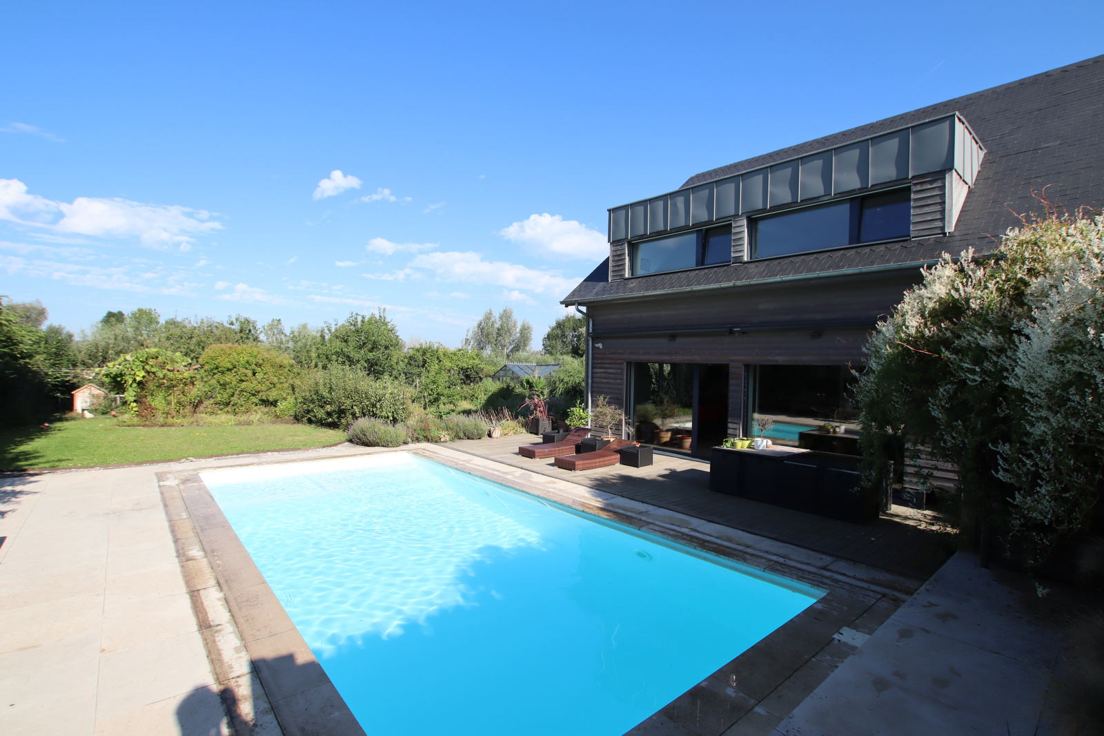Au calme, dans une impasse, venez découvrir cette maison d'architecte de 186 m², maison dite "passive", classée DPE "A",très basse consommation, édifiée en 2012 sur un terrain de 1900 m². Elle comprend entrée, grand pièce de vie ( 75m²) avec cuisine aménagée et équipée ouverte sur salle à manger - salon , arrière cuisine, buanderie, toilettes. A l'étage, palier avec espace bureau, 3 chambres dont une suite parentale avec dressing, salle d'eau. Piscine construite en 2019 chauffée par une PAC. Garage attenant, 2 abris de jardins, 2 serres. Entièrement clos. Cuve réserve eau 5000 litres. Tout à l'égout. Jardin atypique.